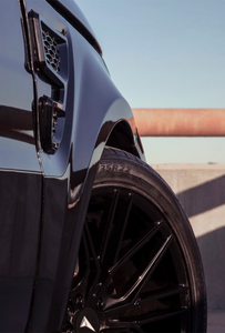 No arch extensions, these full Widebody fender replacements flow seamlessly from the Aerow front bumper giving you that fresh from the factory look with the larger 305x45xr22 setup. The stability and tracking of the widebody package improves road grip and handling similar to that of a vehicle hundreds of pounds lighter.